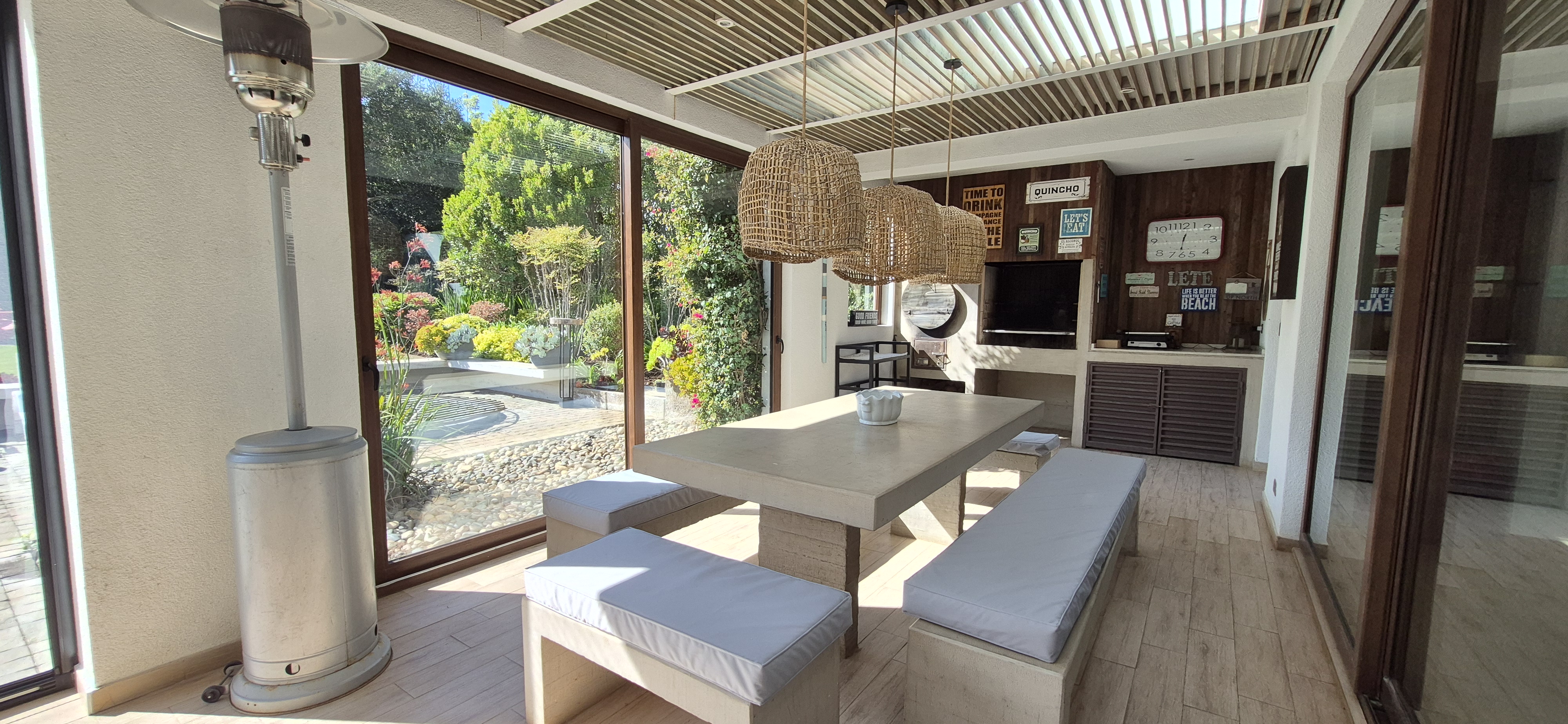 TERRAZA TECHADA CON BARBECUE Y MESA EMPOTRADA PARA ASADO. HORNO DE BARRO