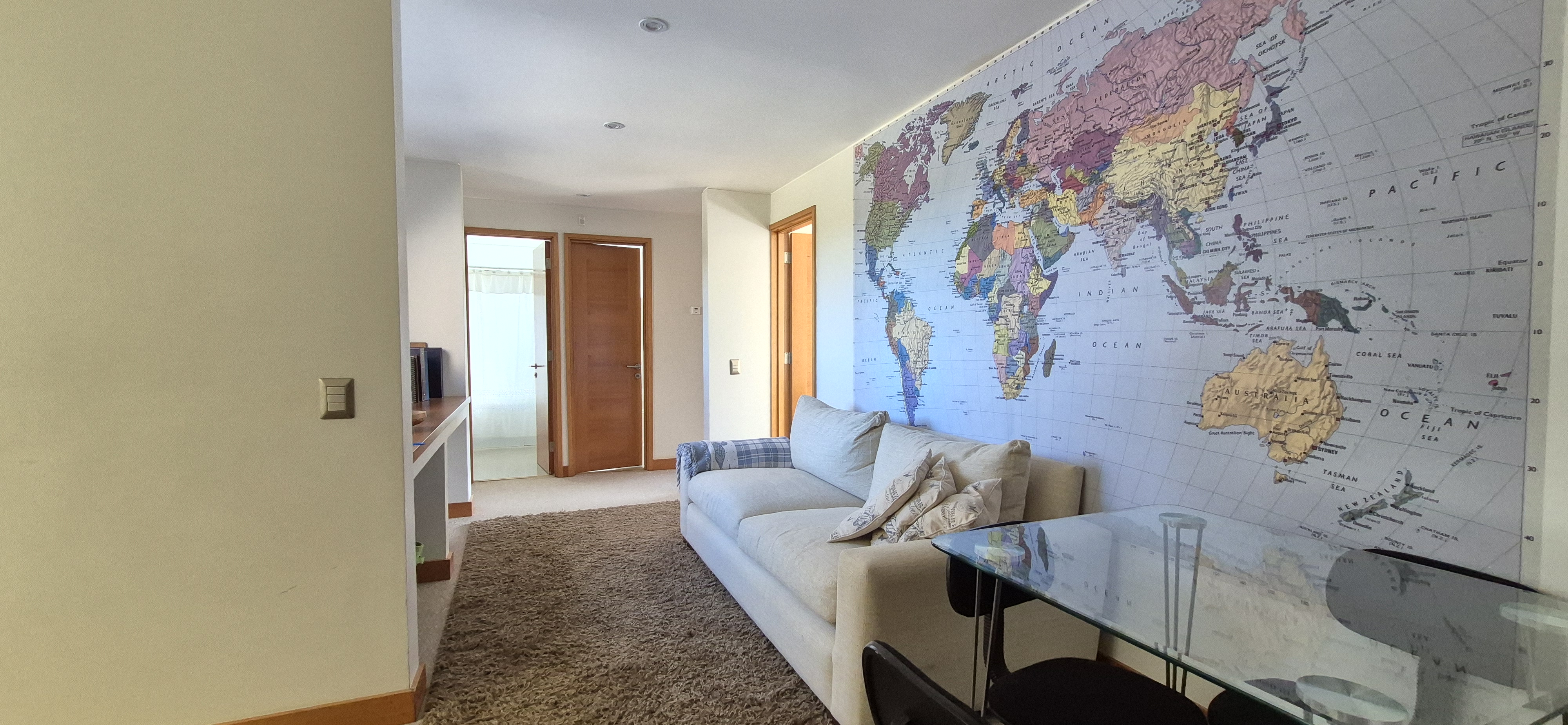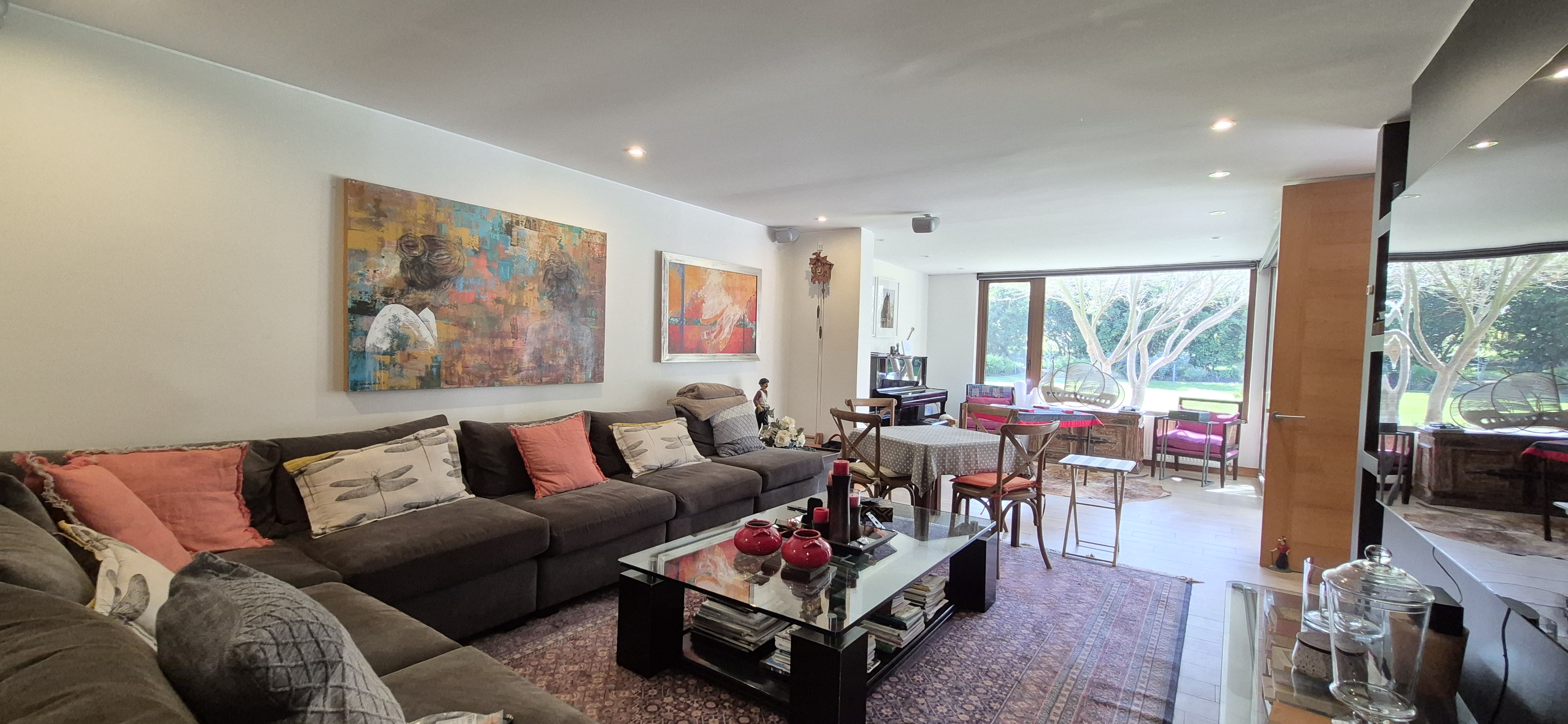 SALA DE ESTAR CON LCD TIENE DIRECT TV CON CONTRATO (MOVISTAR), INTERNET PERMANENTE, HOMETHEATER, DVD Y MESITA PARA JUEGO CON 4 SILLAS
