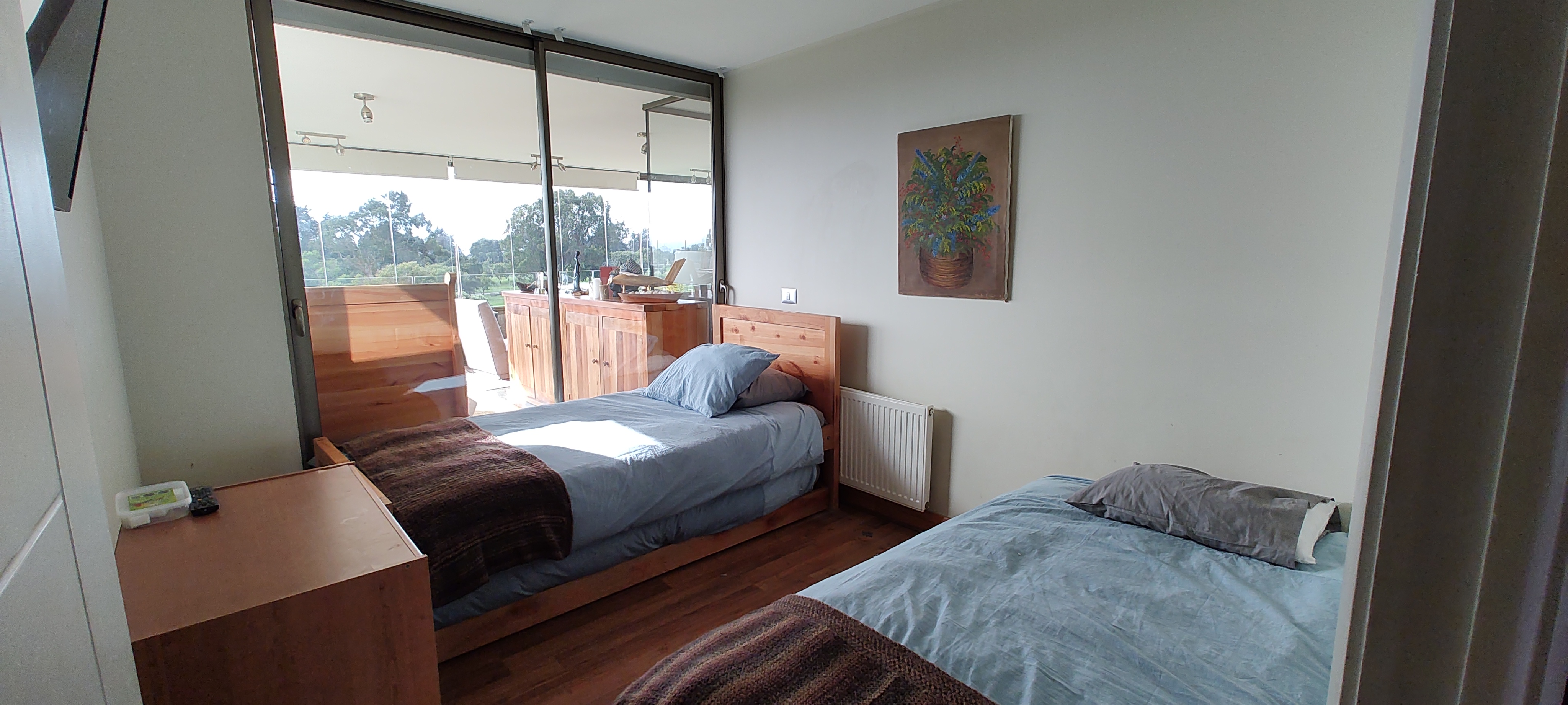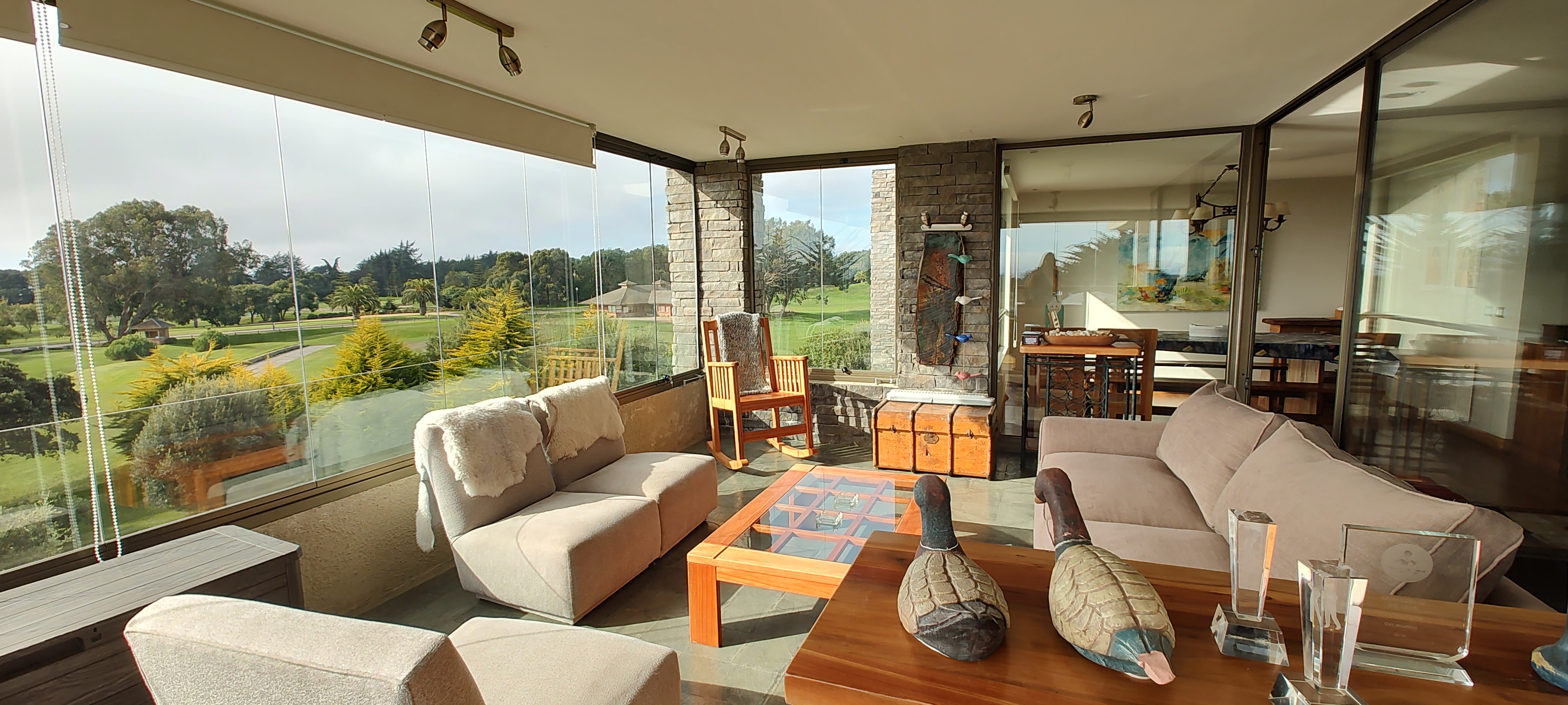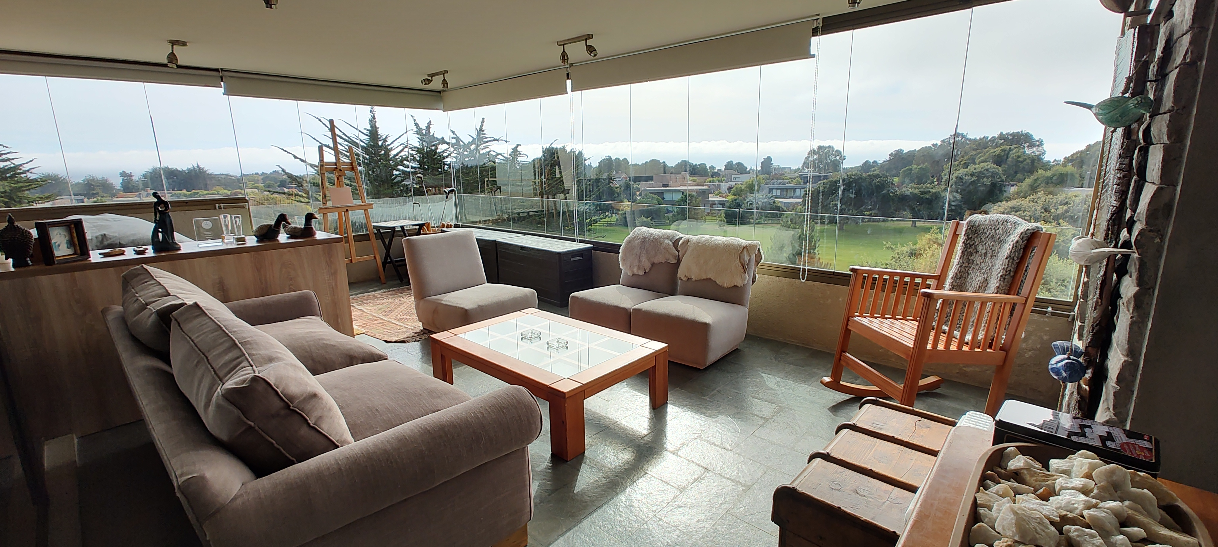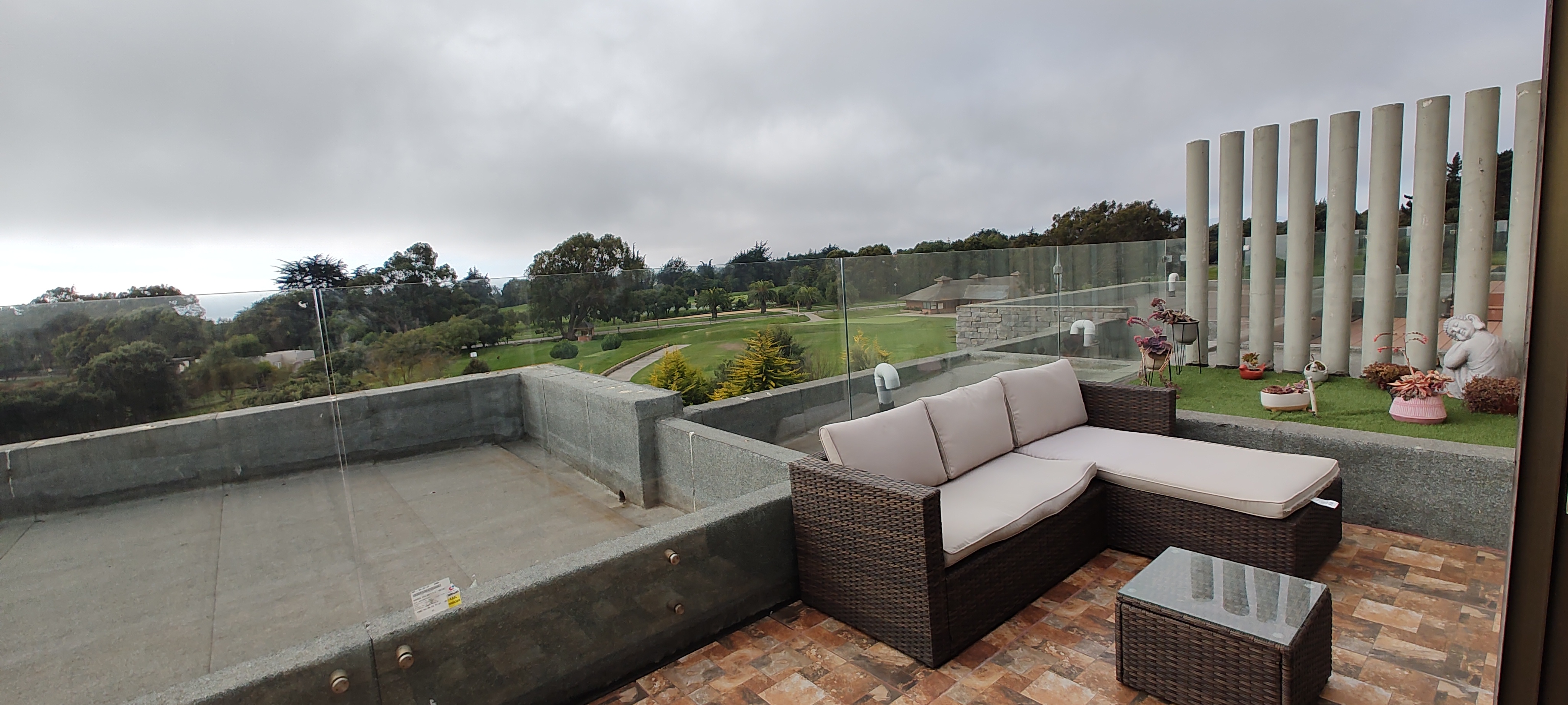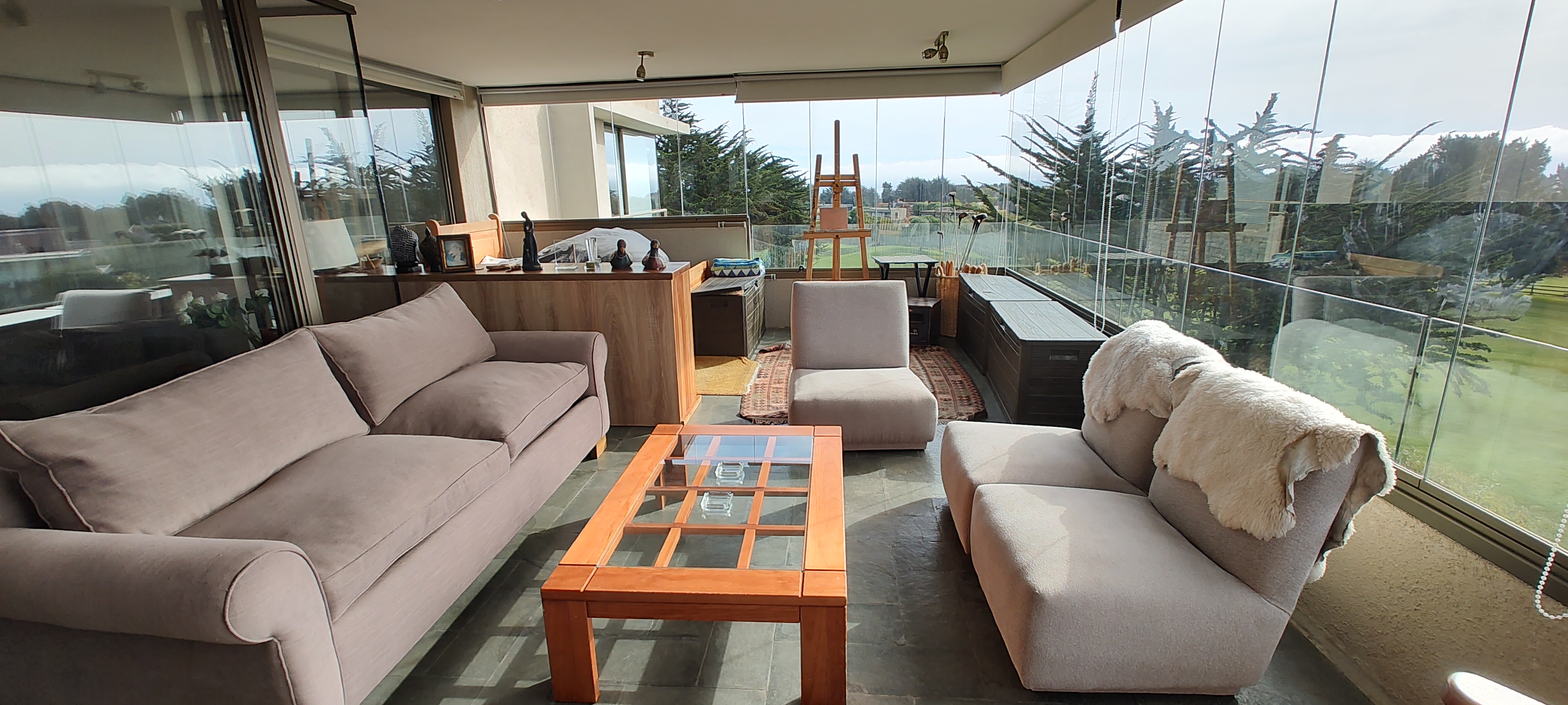 TERRAZA CERRADA, EQUIPADA CON MUEBLES DE TERRAZA Y UNA CAMA ADICIONAL, MUY BUENA VISTA A LA CANCHA Y MAR LEJANO