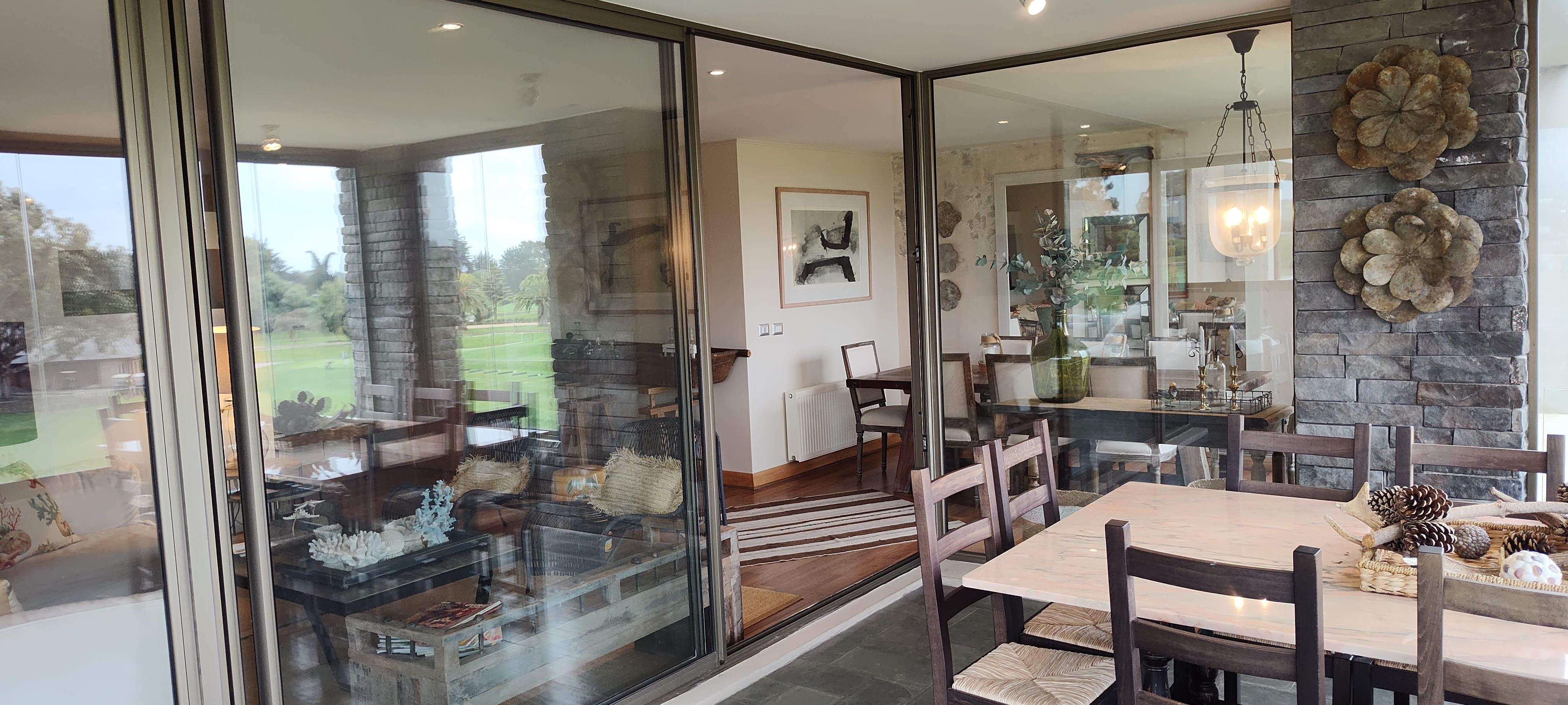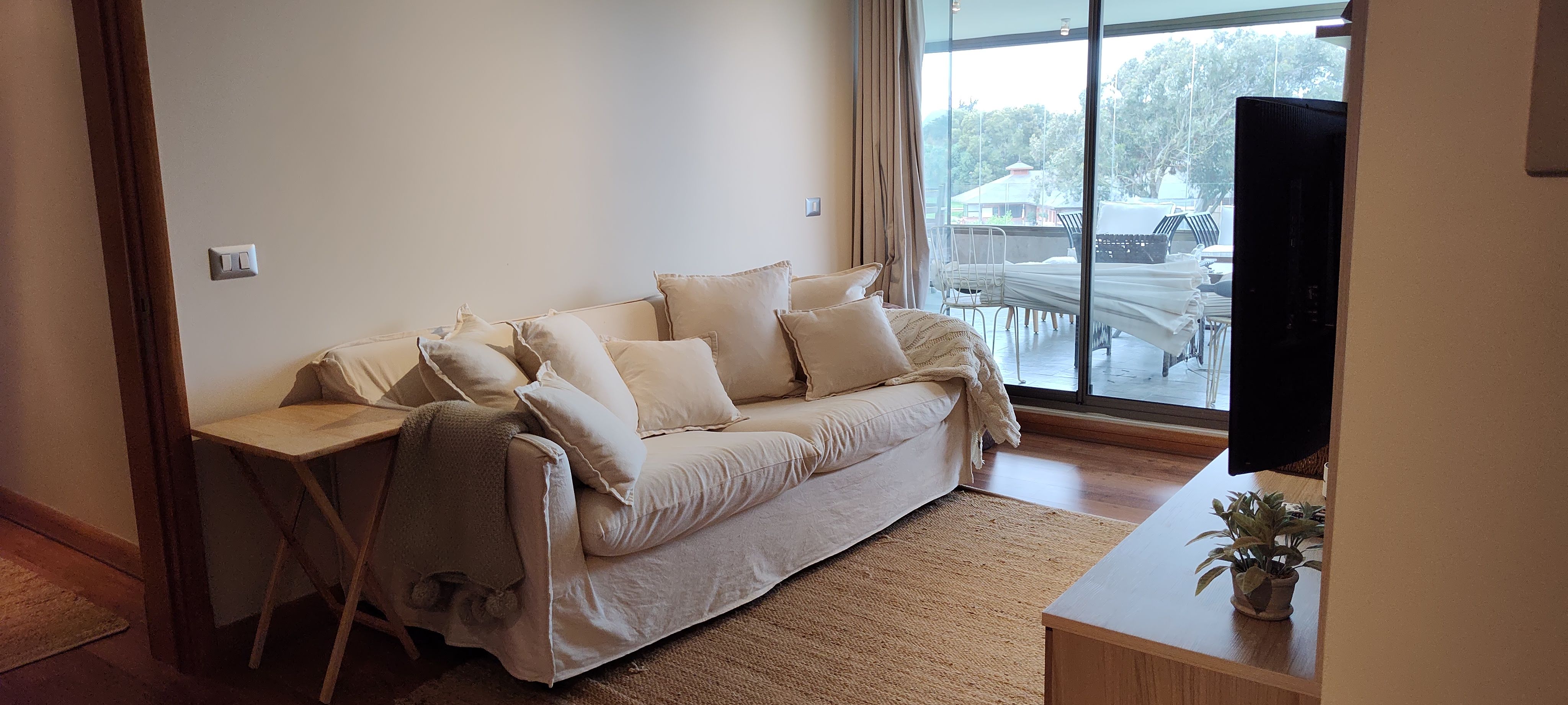 LIVING COMEDOR CON SALIDA A AMPLIA TERRAZA CON VISTA A CANCHA